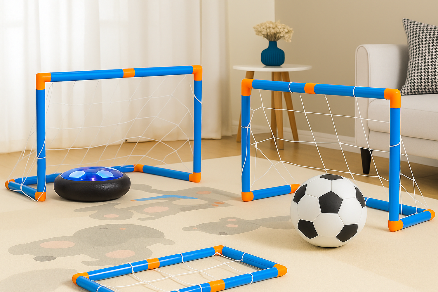 - Hover Soccer – Use the goals to play real matches in the living room or hallway.