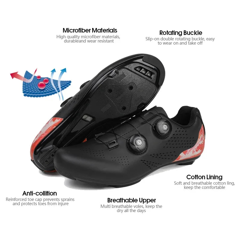Experience precision, speed, and comfort on every ride with the Aerofoot™ Pro-Ride Cycling Shoes. Crafted for professional and recreational cyclists alike, these shoes combine lightweight materials, secure fit systems, and SPD cleat compatibility for maximum efficiency and control — on the road, trail, or in the gym.